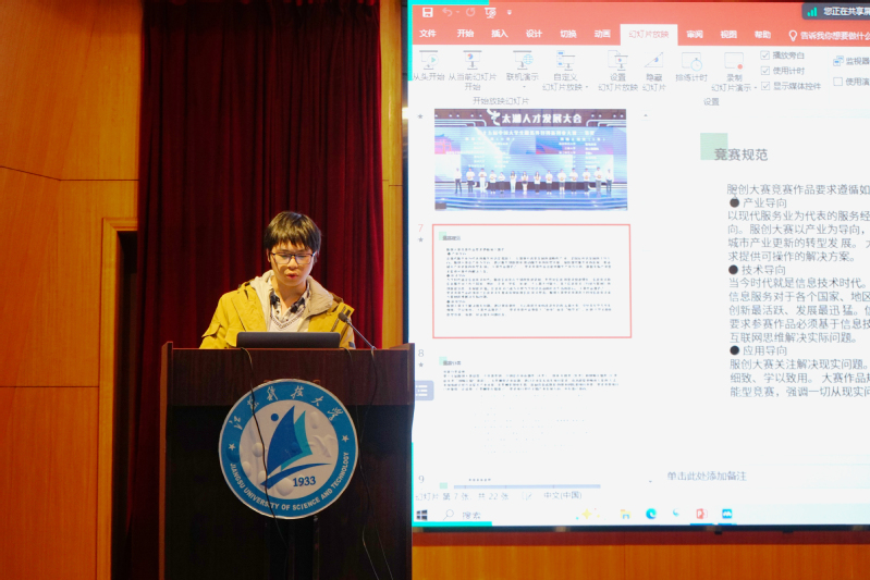 活动现场,学院软件协会会长凌睿祥同学对协会进行了简单介绍,重点分享了中国大学生服务外包创新创业大赛、Office比赛和软件服务外包大赛。他结合自身经历,分享了从初入大学的迷茫到逐步掌握编程技能、参与实际项目开发的成长故事,鼓励学弟学妹们大胆尝试,积极参与社团活动与编程竞赛,以实践检验理论,积累更多的项目经验和解决问题的能力。