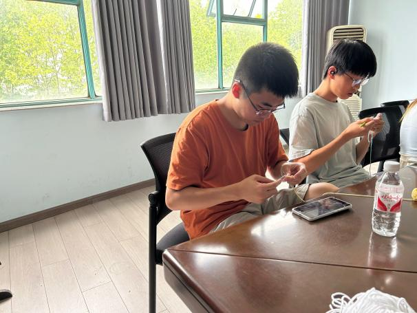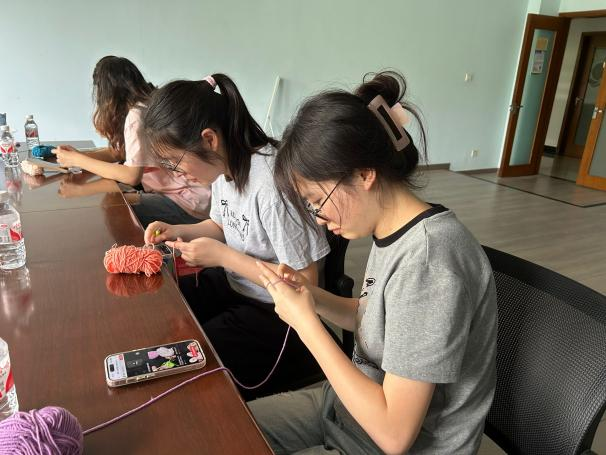 活动的顺利开展离不开2023级人工智能专业喻聪聪和余俊贤同学的悉心指导。她们从基础针法到复杂技巧,耐心解答每位同学的疑问,用专业与热情为活动增添了温暖与活力。